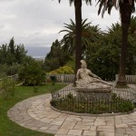 Als wir früh um 8 in Korfu Stadt einlaufen, ist es nur leicht bewölkt und die Sonne kommt schon mal durch. Ich habe im Vorfeld bei „Sunrise Car Rental“ ein Auto reserviert (Peugeot 207 für 27 Euro am Tag). Es war eine gute Entscheidung – vor Ort im Hafen wäre es viel teurer gewesen. Wir liefen also vom Hafengelände zu dem Büro fast gegenüber. Übergabe war problemlos und fuhren gleich Richtung Norden zu Paleokastritsa. Kaum machten wir dort die Wagentür auf, fing es an zu schütten. Dauerte aber glücklicherweise nur eine viertel Stunde, und als wir später im Kloster waren und auch die letzte Reisegruppe gegangen war – strahlte die Sonne wieder und wir hatten wunderschöne Bilder machen können. Katzenliebhaber kommen hier voll auf ihre Kosten – es gibt hier Haufen Katzen. Die Felsküste ist an dieser Inselzipfel wirklich sehr schön. Weiter ging es Richtung Süden zum Strand Glifada, wo wir aber wegen der verschwundenen Sonne doch nicht anhielten. Dafür hatten wir bei Pelekas wunderbare Aussicht quer über die Insel auf Korfu-Stadt (Kerkira). Unsere nächste Station war das Sissi-Schloß in Achilleon. Die gute Frau hat sich wirklich ein nettes Eck zum Wohnen herausgesucht – Innen und Außen war das Anwesen überzeugend und wider Erwartung 7 Euro Eintritt wert.