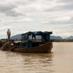 Első célunk Van Long volt. Mivel reggel volt és azért mégis 22 kmre van a várostól, így szerencsénk volt. Rajtunk kívül senki nem volt a tavon! A tó gyönyörű tiszta vizű, lehetett látni a növényeket az alján. Élveztük a kilátást, a karszt hegyeket, a nádast és a csendet – amíg az evezős nénink el nem kezdett magában vietnámiul beszélni. Egy barlanghoz evezett minket. Közben sok jégmadarat láttunk és rákokat gyűjtő horgászokat. Kb. 1,5 óra múlva ismét motorra szálltunk és Kanh Ga faluját céloztunk meg. Itt egy helyi emberhez vittek minket, aki állítólag a hajós volt. A szállásadónktól előre megkérdeztük, mi mennyibe fog kerülni (mindenre fel kell készülni), és ő azt mondta, hogy a csónak 50.000 Dong lesz fejenként. Így eléggé meglepődtünk, amikor az ember leültetett minket és rohadozó fogsorát kivillantva ránknevetve így szólt: Let’s talk about money – vagyis, hogy beszéljünk a pénzről, és 150.000 Dongért akarta adni a csónakot. Mondtuk, hogy nem, az sok pénz (szerencsétlen néni 60.000 Dongért csónakáztatott minket saját erejéből, itt meg egy motorcsónakról beszélünk nevetséges benzinárak mellett). Nem volt hajlandó 120 ezer alá menni, így csalódottan és mérgesen szálltunk vissza a motorokra – de nem lepődtünk meg, amikor 5 perc múlva megálltunk a hivatalos csónakkikötőben, ahol az ember kérdés nélkül 2x50ezer Dongot írt a számlára. Kenh Ga faluja elszigetelten a folyó partján fekszik és itt meg lehet figyelni a helybéliek tipikus falusi életét – ez állt a Lonely Planetben. Amit láttunk, az ennek abszolút nem felelt meg. Az utóbbi időben ugyanis, az összes falusi ház eltűnt, és modern új házak emelkedtek. Így unatkozva és csalódva jót szunyókáltunk a motor kattogására. Természetesen este megkérdeztük a szállodatulajdonost, hogy mi volt az az akció a csónakkal – ő nagyot nézett. Nem tudtuk eldönteni, hogy a motorosát védi, aki a haverjának akart üzletet csinálni, vagy tényleg nem értette miről beszélünk. A lényeg azonban az volt, hogy kiderült, arra lett volna még egy barlang, amit fejenként 10 ezerért megnézhettünk volna. Ezért került 120 ezerbe a csónak. – Milyen barlang??? Senki nem mondott semmit nekünk egy barlangról!!! Ráadásul reggel olyan sokáig álltunk egy fényképes fali poszter előtt és elmondott és mutogatott mindent a több utazási könyv által ajánlott szállodatulajdonos, és most hirtelen előkerült a semmiből egy barlang, amiről szó sem volt eddig… és már megint mi vagyunk a hülye turisták.